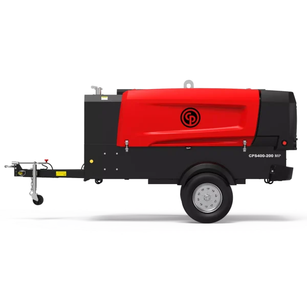 The Chicago Pneumatic CPS 400-200 MP is a single-stage, oil-injected, rotary screw type air compressor, powered by a liquid-cooled, four-cylinder turbocharged diesel engine.
