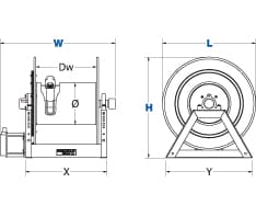 | 1185-2028-H-BUXX | 1 1/2″ | 2 1/16″ | 125′ | No | 3000 | 115 | 35.38″(W) 30″(H) 28″(L) | 23.25″(M) 18.5″(N) | 25.5″(X) 24.5″(Y) |