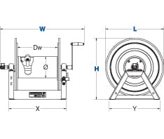 | 1125-5-250 | 3/4″ | 1 1/4″ | 250′ | No | 3000 | 59 | 28 | 42.25″(W) 18.75″(H) 17.63″(L) | 31.44″(M) 10″(N) | 33.38″(X) 15.38″(Y) |