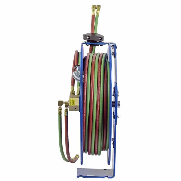 - WELDING GAS SWIVEL – External 90º full-flow dual ported brass swivel with VITON® seals offering both connections from the same side of the reel. No need to remove the reel from its mount.