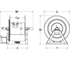 Model Shown: 1275HPL-4-8-E. Please refer to Overall Dimensions and Drum Width for the different reel sizes available.